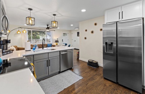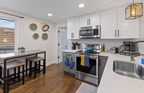 Cette maison de vacances au charme incontestable à Lakewood vous offre une expérience inoubliable. Grâce au parking de l'hébergement, vous pourrez aisément faire le trajet de 6 minutes jusqu'à Stade Broncos Stadium at Mile High ou de 2 minutes jusqu'à Sloan's Lake Park.