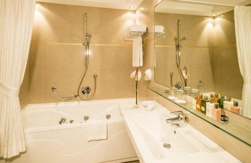 RestaurationPlateau / bouilloire, Vin/champagne, Minibar, Chocolats ou biscuits, Bouteille d'eauSalle de bainsSalle de bains privative, Papier toilette, Baignoire spa, Toilettes supplémentaires, Sèche-cheveux, Salle de bains supplémentaire, Après-shampoing, Serviettes, Douche, Peignoir, Bidet, Baignoire ou douche, Bonnet de douche, Shampoing, Articles de toilette gratuits, Savon, Toilettes, BaignoireGénéralCarte d'accès, Coffre-fort, Parquet, Clé d'accès, Entrée privée, Chauffage, Chambre anti-allergie, Insonorisation, Poubelles, Détecteur de fumée, Chambre(s) communicante(s) disponible(s)High-techTélévision, Télévision à écran plat, Chaînes du câble, Hotspot mobile, Téléphone, Chaînes satelliteActivitésBain à remousEn extérieurMobilier d’extérieur, Balcon, TerrasseCuisineRéfrigérateur, Verres à vin, Bouilloire électrique, Table à mangerCoin salonBureau, Coin salon, CanapéVueVue, Vue sur le jardin, Vue sur la piscine, Vue sur la montagneServicesService de réveilChambreLinge de maison, Armoire ou penderie, Lits enfant/berceauxAccessibilitéBaignoire avec barres d'appui, Accessible par ascenseur, Étages supérieurs accessibles par ascenseurÉquipements en chambreCanapé-lit, Oreiller hypoallergénique, Adaptateur, Prise près du lit, Oreiller sans plumes, Portant, Oreiller en plumesDivertissements et services aux famillesBarrières de sécurité pour bébés |