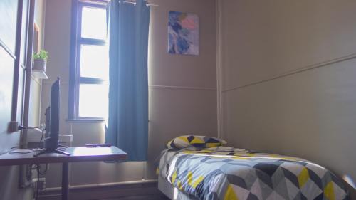 RestaurationPlateau / bouilloireHigh-techTélévision à écran plat, TélévisionGénéralExtincteur, Ventilateur, Moquette, Entrée privée, Détecteur de fumée, Poubelles, Matériel de repassage, Fer à repasserSalle de bainsPapier toilette, Toilettes communes, Douche à l'italienne, Salle de bains commune, Savon, ServiettesCoin salonCoin salon, Coin repasChambreArmoire ou penderieAccessibilitéÉtages supérieurs accessibles uniquement par les escaliersÉquipements en chambrePrise près du lit, Oreiller sans plumes, Oreiller en plumesVueVue sur une rue calme |