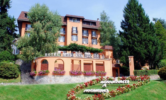 L'Hotel Moderno est un établissement historique situé à 850 mètres d'altitude dans le centre de Premeno, à 12 km de Verbania, sur les rives du lac. Il offre une vue sur le lac Majeur au loin. Le restaurant prépare une cuisine locale. Les chambres disposent d'une salle de bains privative. Elles offrent une vue sur le jardin ou la ville. Celles occupant le 4ème étage donnent sur le lac à l'horizon. Le restaurant est ouvert tous les jours pour le petit-déjeuner, le déjeuner et le dîner. Il est spécialisé dans les gâteaux maison, les glaces et les pâtes. Le bar vous accueille jusqu'à 23h00. Le jardin de 5 000 m² comporte un coin repas avec des tables, des chaises et des parasols. Sa terrasse bien exposée est dotée de chaises longues gratuites. À l'intérieur, vous pourrez vous détendre à la bibliothèque ou dans le salon, qui est pourvu d'un canapé, d'une télévision et d'un piano.
