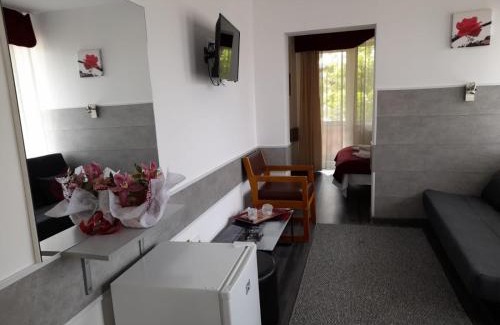 Situé à 100 mètres du centre de Gura Humorului, l'Hotel Simeria propose une connexion Wi-Fi gratuite dans tout l'établissement. Les chambres et les suites du Simeria sont équipées d'une télévision par câble et d'un téléphone. Toutes les chambres sont équipées d'un réfrigérateur et d'une salle de bains privative avec douche. Sur place, vous trouverez un bar et un restaurant à la carte. Vous pourrez également profiter du sauna sur place, moyennant des frais supplémentaires. Vous pourrez également skier sur la piste de Soimul située à 2 km. Les monastères peints de Voronet et Humorului, classés au patrimoine mondial de l'UNESCO, sont à moins de 6 km. La gare routière et ferroviaire de Gura Humorului se trouve à 400 mètres. Vous pourrez rejoindre rapidement à pied la ville et trouverez des restaurants servant des plats traditionnels roumains.