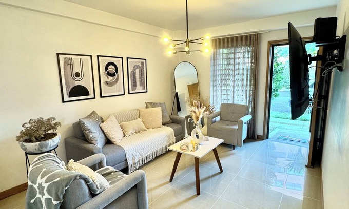 Cette maison de vacances avec 3 chambres et 2.5 salles de bain à Ríonegro est la solution parfaite pour explorer les environs en toute simplicité. Les amoureux de la nature et du grand air seront ravis de loger à 39 minutes en voiture de Parc Poblado et à 40 minutes de Parc Lleras. Laissez-vous porter par vos pieds pour une balade de 9 minutes jusqu'à Centre commercial San Nicolás, et si vous souhaitez prendre la voiture, le trajet ne dure que 2 minutes jusqu'à Parc de loisirs Comfama Tutucán.