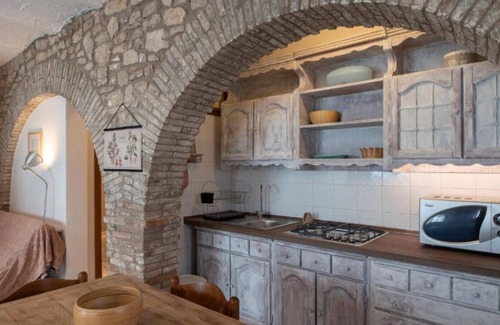 The house is located inside a characteristic village, the "Castello di Mantignana". The stone studio apartment offers a comfortable environment, with a double bed (or two singles) and a queen-size sofa bed, a large linear kitchenette and a bathroom with shower. In front of the structure there is a lovely shared garden in which to relax and where a table and chairs are available to use in good weather for outdoor dining. Public parking is always available. On the same street is Umbria Doc, an excellent restaurant, offering local cuisine and wines in a family atmosphere. The location of the house, with the nearby motorway junction, is convenient for reaching Lake Trasimeno, Perugia, Assisi and the beautiful villages of Umbria, it is also just a stone's throw from the border with Tuscany. In the village you can reach all the main services and shops on foot. Try the Forno di Pioppi, famous above all for its cheese cake.