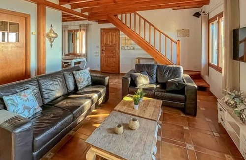 This holiday home is located in an idyllic location, inland on the coast, offering stunning views and the tranquility you need to recharge during your holiday. This wonderful house has a capacity for up to 10 people, 5 bedrooms carefully designed to promote comfort and privacy and 2 modern bathrooms. The house has large, bright rooms that will make you feel at home from the first moment, large windows and cozy decoration with wooden touches that create a warm and welcoming atmosphere. The kitchen is equipped with everything you need to prepare delicious lunches and dinners. In addition, the house has an outdoor barbecue so you can enjoy meals outdoors with your family.