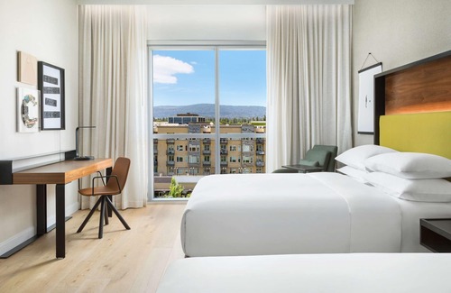Hyatt Centric Mountain View possède 167 chambres comprenant un coffre-fort et une cafetière ou une bouilloire. Les lits sont préparés avec une couette en duvet d'oie. Une télévision à écran plat est disponible dans les chambres.