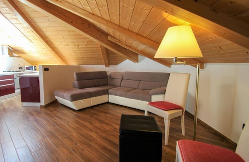 Apt 3 pièces 116 m2, sous le toit. Aménagement moderne: grand séjour/salle à manger mansardé avec table pour les repas et TV (satellite). Sortie sur la terrasse. 1 chambre mansardée avec 1 lit et 1 lit double. 1 chambre mansardée avec 1 lit et 1 lit double. Sortie sur le balcon. Coin cuisine (4 plaques de cuisson, four, lave-vaisselle, micro-ondes, congélateur). Bain/bidet/WC, douche/bidet/WC. Chauffage au gaz, air-conditionné. Possibilité de chauffage uniquement du 01.10. au 30.04. Balcon, terrasse. Meubles de terrasse. Vue panoramique sur la mer et la vallée. A disposition: lave-linge. Internet (Connexion WIFI, gratuit). Veuillez noter: logement non-fumeur. Maximum 1 animal/ chien autorisé. Entrée privée. IT010037B4B2BFS87C