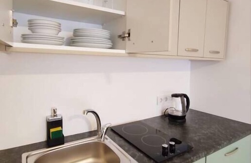 Un réfrigérateur et des ustensiles de cuisine sont à votre disposition dans la cuisine. Connectez-vous au Wi-Fi ou installez-vous confortablement devant la télévision.