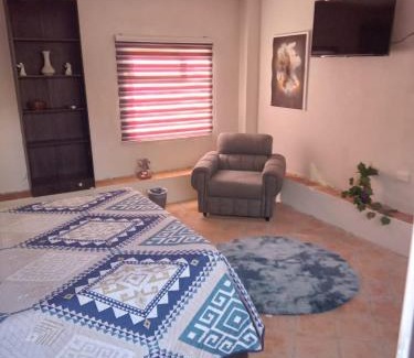 L’établissement Jardín Quinta Las Fuentes Cabañas, Valsequillo. PUEBLA est situé à 25 km de ce lieu d’intérêt : Acrópolis Puebla. Il possède un restaurant, une piscine extérieure, une salle de sport et un jardin. Une connexion Wi-Fi gratuite est à disposition. Vous bénéficierez d’une salle de bains privative entièrement équipée avec une douche et des articles de toilette gratuits. Un petit-déjeuner à la carte est servi sur place. Vous pourrez profiter d’une terrasse ainsi que d’une aire de jeux pour enfants sur place, et pratiquer le vélo dans les environs. Vous séjournerez à respectivement 20 km et 20 km de ces lieux d’intérêt : International Museum of the Baroque et Parc des expositions de Puebla. L'aéroport le plus proche (Aéroport international Hermanos Serdán de Puebla) est à 40 km.
