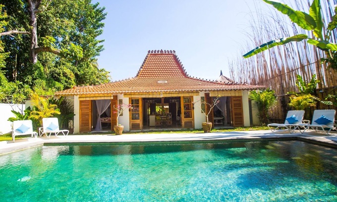 Les meilleurs tarifs pour Joglo at Lata Lama commencent à partir de $123 par nuit et comprennen Internet, Blanchisserie, Parking, Animaux acceptés, Piscine privée, Balcon/Terrasse, Literie/Linge de maison, Services à la clientèle, Divertissement, Barbecue/Cuisine en plein air, Climatiseur, Petit-déjeuner, Piscine, Bar, Adapté aux enfants, Cuisine, Zone fumeurs désignée, Activités sportives, Articles de toilette avec toutes les autres installations. MLFR correspond à chaque voyageur avec son hébergement parfait, que vous voyagiez avec un groupe, des amis, une famille ou des animaux de compagnie.