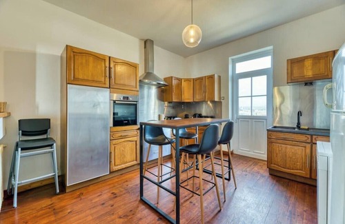 Vous apprécierez la grande cuisine aménagée et équipée (combiné réfrigérateur/congélateur, micro-onde, four, plaques vitrocéramiques, bouilloire, lave-vaisselle, machine à café Nespresso, barbecue et nécessaire de cuisine) et sa table haute.
