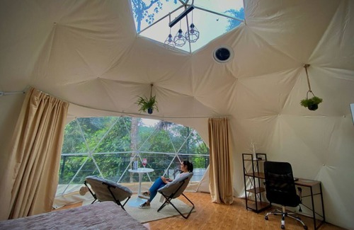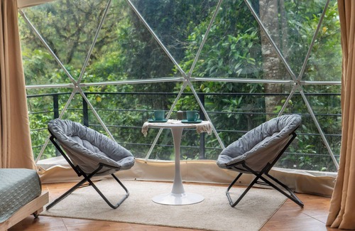 Tucked away amidst the vibrant, lush rainforest, our dome offers unparalleled privacy, ensuring your family enjoys a truly secluded getaway. You'll be completely surrounded by verdant green foliage, creating your own private world. Drift off to sleep to the soothing symphony of the jungle and the gentle rush of a nearby river – a truly calming and restorative experience that connects you deeply with nature.