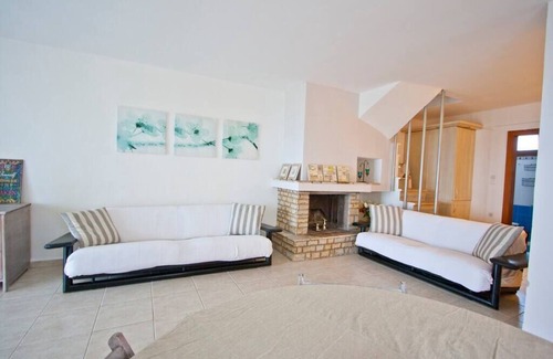 A three-story house with an amazing and romantic view of the Mediterranean Sea. The house is infused on a rock where the Aegean Sea meets the hillside of Possidi.