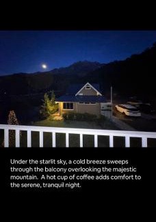 Salle de bainsBidet, Savon, Serviettes, Shampoing, Toilettes, Chaussons, Papier toilette, Sèche-cheveux, Salle de bains privative, DoucheHigh-techTélévision, Télévision à écran plat, Service de streaming (ex. Netflix)GénéralVentilateur, Poubelles, Fer à repasser, Entrée privée, ParquetEn extérieurMobilier d’extérieur, Barbecue, BalconCuisineRéfrigérateur, Grille-pain, Micro-ondes, Bouilloire électrique, Plaque de cuisson, Table à manger, Ustensiles de cuisine, CuisineCoin salonCanapé, Coin salon, Coin repasVueVue, Vue sur le jardin, Vue sur la montagneChambreLinge de maisonCaractéristiques du bâtimentIndépendantÉquipements en chambrePortant, Prise près du litDivertissements et services aux famillesJeux de société / puzzlesRestaurationBouteille d'eau |