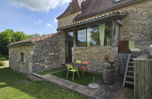 Découvrez ce gîte de charme niché au cœur de la campagne lotoise, à Varaire, dans un cadre paisible et verdoyant. Cette maison quercynoise typique de la région, entièrement rénovée, allie authenticité et confort moderne. Idéalement située à proximité de la vallée du Lot et du célèbre village de Saint-Cirq-Lapopie, elle constitue un point de départ parfait pour explorer notre magnifique département du Lot. Profitez d'une pièce de vie lumineuse dans la véranda, agréable en toute saison, et détendez-vous dans le vaste parc arboré, doté de jeux pour enfants. Le calme environnant est ponctué d'une touche insolite : un taureau rouge en résine, clin d'œil aux origines du propriétaire ! Avec sa formule tout inclus, sa piscine hors-sol privative et chauffée (de juin à septembre), et les commerces locaux à portée de main (épicerie, restaurant, pizzeria), ce gîte est un véritable havre de sérénité pour des vacances mémorables Accessible par quelques marches à l'arrière de la maison : buanderie avec lave-linge et sèche-linge, hall d'entrée, pièce de vie de 45 m² avec 3 marches (coin cuisine équipé et intégré, espace salon), véranda de 55 m² non chauffée, chambre (1 lit en 160, lavabo,douche) avec sa salle de bain ouverte, WC indépendant avec lave-mains. A l'étage : 1 chambre enfant (1 lit en 90) avec sa salle d'eau ouverte, l'autre chambre de 25 m² totalement ouverte avec quelques marches dispose d'un lit en 160 et d'un WC fermé par une porte. Chauffage au sol dans tout le gîte mis à part dans la chambre du bas. Insert dans la pièce de vie. Accès Wifi. Terrain clos d'environ 1500m² avec toboggan, portique, cage de foot, piscine hors-sol privée et chauffée (6.50x3.50 à fond plat de 1m30) sécurisée par un dôme est accessible par des marches depuis la terrasse privative de 20 m² (salon de jardin, plancha). Ici, vous êtes en formule tout inclus ! Gîte insolite "Le Moulin à vent" (46G12201) se situe à côté sans vis-à-vis. Logement non accessible aux personnes à mobilité réduite.