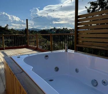L’hébergement La Cabaña de Blue offre une vue sur le jardin, à environ 34 km de ce lieu d’intérêt : Parc Lleras. Il propose un balcon et une machine à café. Cet hébergement est installé à 34 km de : Parc El Poblado. Il comprend un jardin et un parking privé gratuit. Disposant d’une terrasse et offrant une vue sur la montagne, ce chalet possède 1 chambre, un salon, une télévision à écran plat, une cuisine équipée avec un réfrigérateur et une plaque de cuisson, ainsi que 1 salle de bains avec une douche. Des serviettes et du linge de lit sont à votre disposition. L’établissement La Cabaña de Blue dispose d’un bain à remous. Vous séjournerez à respectivement 41 km et 31 km de ces lieux d’intérêt : Monolithe Piedra del Peñol et Parc aquatique Parque de las Aguas. L'aéroport le plus proche (Aéroport international José-María-Córdova) est à 14 km.
