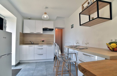 - Une cuisine équipée avec notamment: four à micro-ondes, plaques de cuisson, airfryer, cafetière à filtre