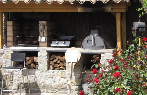 This space is completely reserved for you. No cohabitation with other tenants. Breakfast is included in the price. Your dog will also be welcome in this private suite composed of a large bedroom with a view, a bathroom with large shower and wc, a living room with fully equipped kitchen including dishwasher and washing machine , a dining table, a living room with television and an enclosed terrace with barbecue, gas plancha and pizza oven. The whole is located in a large stone house on the heights of the hilltop village of L’Epine, the starting point for many hiking and cycling tours. Free WIFI. Private parking for one car.