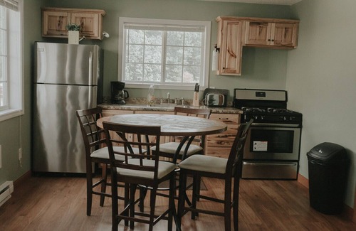 Nous pouvons dormir jusqu'à 14 personnes, nous avons 7 chambres, cuisine complète, salle de billard, et 3 salles de bain complètes. Sans parler de notre terrasse surplombant le magnifique lac Ann et ses environs.