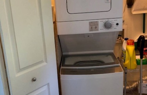 Inside this newly furnished cottage you’ll find ceiling fans and central air/heat in every room, strong 5G Highspeed Internet / WiFi, a living room that features a built-in breakfast table for two overlooking the lake, a slide-out countertop table from the island, double-sized sleeper sofa, comfortable chairs and a Smart TV. The kitchen includes major appliances including a Keurig coffee maker and plenty of cookware for any meals you’d like to prepare during your stay. Adjacent to the kitchen is a utility closet with a new, all-in-one washer and dryer as well as an ironing board and iron. The large bedroom includes a new king-size bed and a large closet that includes an inflatable air mattress for an additional guest. The bathroom includes a large, tiled shower with two shower heads and a built-in bench. It also includes built-in cabinets, which contain plenty of beach towels, bath towels, and a hair dryer for use during your stay.