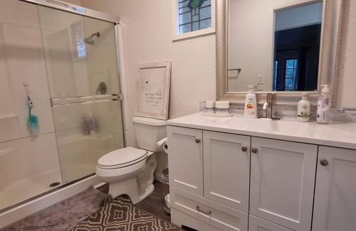 Perfect for large families or groups! This is a spacious, newly renovated home with 8 beds, in 6 bedrooms and 3 bathrooms on a 1 acre flat lot. There is plenty of yard to enjoy in this quiet, upscale neighborhood. A large gravel parking area can fit any size of RV or boat. The home is equipped with a touchpad electronic front door lock for easy, keyless access. High-speed wifi internet and cable TV with over 125 channels are provided, with free Netflix, Prime Video, and Disney+. Located just 5 minutes from Hwy 5 and major shopping attractions such as Costco, Target, or the Mt. Shasta Mall, and 3 minutes from Bethel Church!