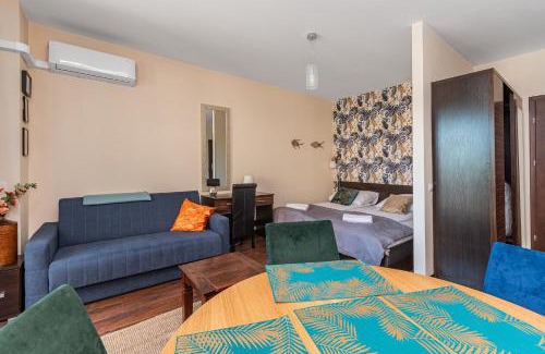 L’hébergement Lazurowy Dwór - Królewski Sen by Grand Apartments se situe à Sztutowo, à seulement 40 km de ce lieu d’intérêt : Canal d'Elbląg. Il possède une piscine extérieure, un jardin, une terrasse et une connexion Wi-Fi gratuite. Cet appartement comprend également une piscine privée. Cet appartement avec climatisation se compose de 1 chambre, d'un salon, d'une kitchenette entièrement équipée avec un réfrigérateur et une machine à café, ainsi que de 1 salle de bains avec une douche et un bain à remous. Des serviettes et du linge de lit sont à disposition. Vous pourrez profiter d’un sauna et d’un bain à remous. Vous pourrez profiter d’une aire de jeux pour enfants sur place et pratiquer la randonnée à proximité. Vous séjournerez à 46 km de ce lieu d’intérêt : Lac Drużno. L'aéroport le plus proche (Aéroport Lech Wałęsa de Gdańsk) est à 67 km. Un service de navette aéroport payant peut être assuré par l’établissement.