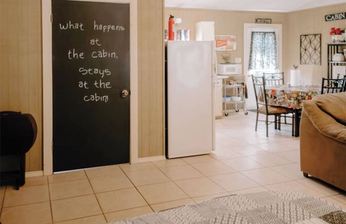 5-6 personnes - Chaque cabine offre un lit queen size, deux lits simples, un canapé-lit queen, une cuisine complète, une salle de bain complète et un barbecue, de la chaleur et de l'air de chaque côté. Chaque côté peut être réservé séparément. Il a également un grand porche couvert.