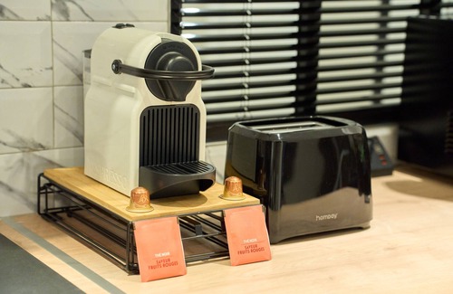 Parfaitement aménagée, elle est équipée de tout le nécessaire pour préparer vos repas et vos boissons chaudes : plaque de cuisson, four, four micro-onde, réfrigérateur, ustensiles de cuisine, grille-pain, appareil à croc monsieur, cafetière et bouilloire.