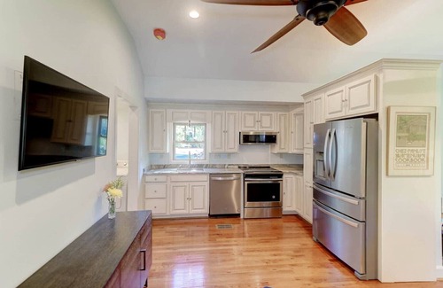 Magnifique "European Cottage", niché dans un jardin paisible à 4,8 km du centre-ville de Charleston, dans le quartier de DuPont. Cottage entièrement meublé et très privé avec cuisine complète et salle de bain privée. WiFi et câble fournis. Grand salon et grande chambre privée séparée. Deux lits queen / draps fournis. Laveuse et sécheuse en unité.