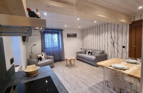 Au coeur de la station de Lanslevillard, ce studio entièrement rénové dans un esprit contemporain est séduisant par sa surface et son confort. Les draps sont inclus et le lit du canapé est fait à votre arrivée. Spacieux, lumineux et très bien équipé, ce gite est idéal pour un couple. Studio situé dans une maison comprenant 3 gites et le logement des propriétaires. En rez-de-chaussée (accès indépendant par quelques marches à l'extérieur) : séjour-cuisine coin salon (1 canapé convertible Rapido Express pour 2 personnes), une salle d'eau (douche), WC séparé. Parking public devant la maison ou en face.