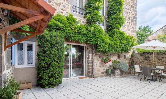 Charmant gîte dans un ancien prieuré, situé à Montaigut-le-Blanc, authentique village médiéval de caractère, idéalement situé pour randonner entre lacs et volcans d'Auvergne ainsi que pour découvrir les nombreux villages, châteaux et églises romanes. Mitoyen à la maison de la propriétaire. Le gîte se compose au rez-de-chaussée : -d'un séjour avec poêle à bois -d'une cuisine Au premier étage : -d'une chambre avec un lit 140 et une salle d'eau avec WC attenante. La chambre est accessible par une marche supplémentaire. -d'une chambre avec un lit 140 -d'une petite chambre (8 m²) avec un lit 140 (1 personne supplémentaire acceptée gratuitement) -d'une salle de bain (la baignoire est accessible par une marche) -d'un WC indépendant L'atout de cette maison c'est bien évidemment l'extérieur avec plusieurs jardins et deux terrasses. Vous profiterez d'une terrasse avec salon de jardin attenante au gîte et d'une autre terrasse avec salon de jardin, bain de soleil et barbecue avec une vue imprenable sur le village de Montaigut-le-Blanc (cette terrasse est accessible par un escalier en pierres). Au printemps vous serez émerveillés par la floraison de la glycine. Chauffage non inclus au delà de 8kw/jour en revanche un panier de bois est offert à l'arrivée. Parking privatif. De nombreuses visites à proximité : Saint Nectaire, Murol, Besse et Saint Anastaise, Issoire, Saint Saturnin, Montpeyroux, Grottes de Jonas, Gergovie, les Puys Sancy et Puy de Dôme, les lacs: Chambon, Aydat, Pavin...