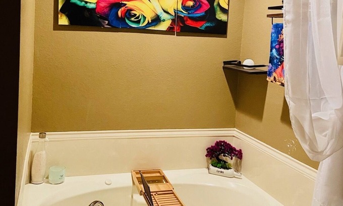 Bring the whole family to our quiet welcoming getaway home. This home includes a 3 bedroom 2 bath, master suite with an amazing whirlpool jet tub, a separate shower and walk in closet for space. There is LED lighting in every room to enjoy at night and motion sensor lighting through the walkways. The living room has a 68in TV with a PS4 game system and Virtual Reality Headset included for your entertainment. (No games included) The entire family can sleep comfortably as it sleeps up to 6 or 7 people. We provide free Wifi with your stay along with heating to make sure you have a comfortable stay.