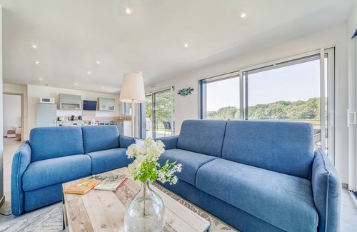 Idéal pour une escapade en famille ou entre amis, le logement de 90 m² est l'endroit parfait pour un séjour de détente ! Vous disposerez ainsi d'un grand salon séjour lumineux, une cuisine moderne entièrement équipée, deux chambres, une salle de bain ainsi qu'un vaste extérieur avec un jardin donnant directement sur le lac ainsi qu'une terrasse sur pilotis avec un jacuzzi pour se prélasser devant ce magnifique panorama ! Linge de lit et serviettes fournis.