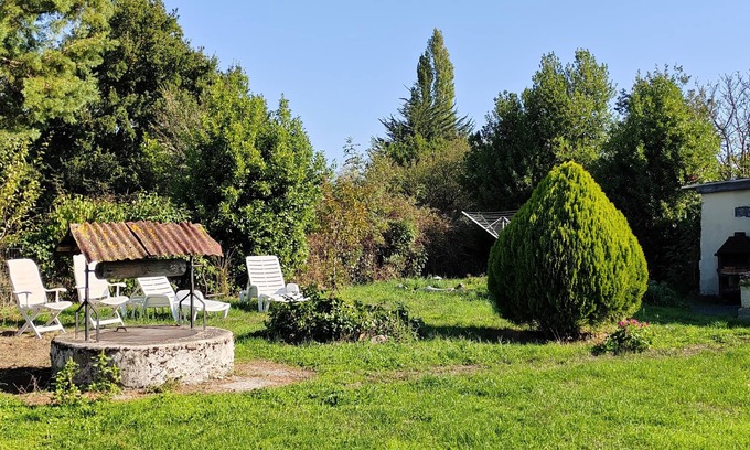 Le grand jardin 1500 M2 vous offre un espace pour vous relaxer avec salon de jardin, transats et barbecue.