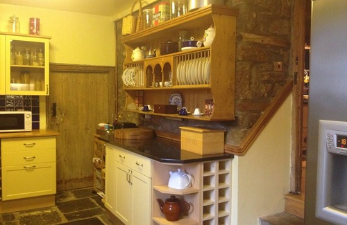 Crunwere House est très spacieuse et en entrant dans le porche avant et dans le hall principal, vous voyez un escalier géorgien classique original menant au premier étage. Il y a 2 grandes salles de réception, toutes avec des cheminées d'origine, de hauts plafonds et de grandes fenêtres géorgiennes. La salle de lecture, la salle de consultation du recteur a également son foyer au charbon d'origine. La salle de petit-déjeuner présente des murs en pierres apparentes, une cuisinière encastrée dans la cheminée. Cette chambre mène à une véranda d'époque et offre une vue sur les jardins à l'ouest où vous pourrez admirer de magnifiques couchers de soleil d'été, tout en préparant votre repas du soir sur le grand barbecue. Il y a une cuisine contemporaine bien aménagée avec son sol en ardoise d'origine. Crunwere dispose de 5 chambres doubles spacieuses dont une avec canapé-lit supplémentaire, la maison peut donc facilement accueillir 2 grandes familles. L'eau chaude et le chauffage sont fournis de manière adéquate par la grande chaudière qui bénéficie d'un système de contrôle moderne.