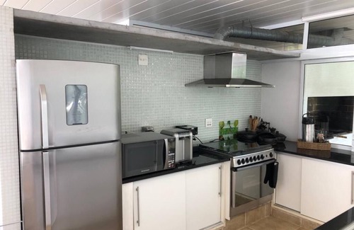 Maison confortable, belle architecture, environnements aérés et lumineux avec beaucoup d'espace de jardin, terrasse, piscine avec accès par marches, barbecue et four à bois, idéal pour famille et amis. Les environnements permettent l'intégration de tous, avec le concept d'espace ouvert.