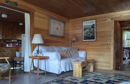 Private ranch style cabin with full amenities, sleeps two adults. Living room with single bed, TV, woodstove and one bedroom with queen size bed and full wrap around deck with lovely view of a large lawn, lake and spectacular sunsets. Included in the rental is access to the lake by a boat road. The bottom is rocky. Fire pit when drought conditions are not a threat. Canoe, paddles and life jackets available on Beaver Moutain lake only. Wild life is all around you!