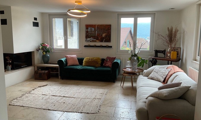 On lake Annecy (5 minutes by car from Annecy city center), wonderfull apartment full of light, right in the center of Veyrier du Lac, 3 minutes walking distance from the beach and lakeside restaurants.