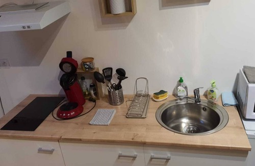 La cuisine est équipée de tous les ustensiles nécessaires et des produits sont à disposition à votre arrivée: Café, thé, sucre, huile, vinaigre, sel, poivre