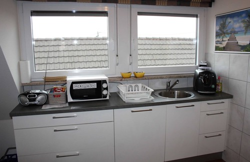 80 m² appartement non-fumeur pour max. 8 personnes dans les combles de l'ancien hôtel de ville de Rheinhausen (Niederhausen) à l'Europa-Park Rust - parc familial et parc d'attractions (à 3,5 km). Equipements: • Général: complet pour 8 pers. équipé; Wi-Fi (gratuit); lecteur radio / CD; ; Coffre-fort / sécurité Lumineux et spacieux; Décor moderne avec parquet; chambres non-fumeur; Fleurs et plantes; Lits supplémentaires (sur demande); Fer et table à repasser (sur demande) • Chambre 1: lit double; literie; placard; Tables de chevet avec lampes; Téléviseur à écran plat Câble / satellite • Coin salon et chambre à coucher: lit double; 2 lits simples; Canapé-lit (2 pers.); literie; Tables de chevet avec lampes; salle à manger; TV écran plat câble / satellite; Table basse; Kitchenette (avec plaques de cuisson, cafetière, réfrigérateur, four à micro-ondes, bouilloire, grille-pain, évier, serviettes de toilette, vaisselle et couverts) • Salle de bains: douche; baignoire; bidet; lavabo; WC; Serviettes de bain; sèche-cheveux; Distributeur de savon; Coupe • Toilettes invités: WC, serviettes, lavabo