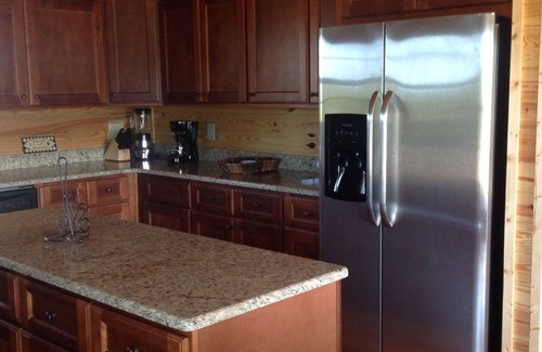 Cette cabane en rondins de 4 chambres et loft / 4 salles de bain comprend un porche enveloppant, 2 foyers au gaz, une cuisine entièrement équipée, une salle à manger, une grande chambre, un loft, un sous-sol fini, une télévision par câble, une laveuse / sécheuse, un système de musique compatible MP3 intérieur et extérieur et tonnes d'espace de vie extérieur. La ferme familiale Baynes possède 2 étangs bien approvisionnés pour la pêche, un sentier de randonnée de 2,5 km, un grand pavillon avec des tables de pique-nique et un barbecue au charbon de bois ainsi que de nombreux espaces ouverts pour le camping en plein air.