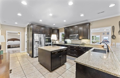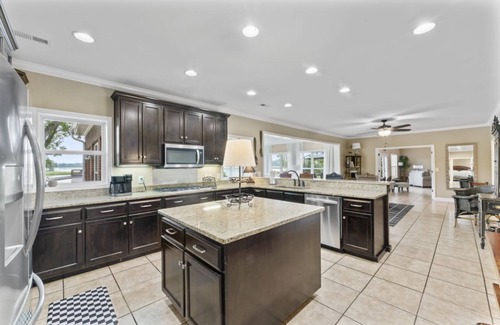 Get ready to relax in this 4-bedroom, 4.5 bath house in Pell City on the beautiful Logan Martin Lake. This amazing property boasts 2 king beds, 2 queen beds, and 2 twin beds, perfect for families or groups of friends. Every bedroom has a private bathroom, walk in closet, and seating area for privacy. With 5 bathrooms including a jetted bathtub, guests can unwind in style. Multiple living rooms, screened in boat house, and fully stocked kitchen offer extra space to kick back, relax and never have to leave. Experience the magic of lake living at it's finest.
