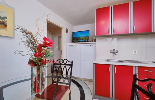 This practically furnished flat is located in a quiet street and, surrounded by lush Mediterranean vegetation, offers you a peaceful retreat just a few steps from the beach. Start the day with a hearty breakfast, pack some goodies for a romantic beach picnic and end a long day in the sun with a board game or a quiet read in the seaside village of Artatore, near the centre of Mali Loinj.