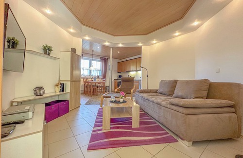 10 km from Cochem in a quiet village, is this fine basement apartment, where it stays nice and cool in summer. Ideal for a couple, this accommodation features a comfortable bedroom, a well-equipped kitchen, a relaxing sitting area with a TV, and your bathroom, providing everything you need. The major plus is the spacious, enclosed garden with two terraces, offering sun or shade. You park safely on private property and can charge your car. Although the area is touristy, you will enjoy peace here
