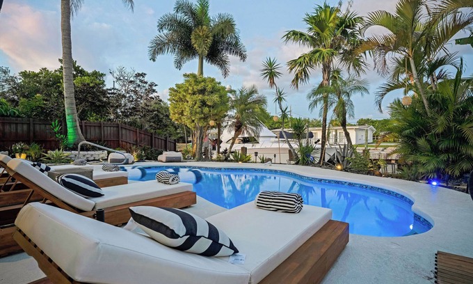 Welcome to our 3BR/3BA Waterfront Villa, featuring a private heated pool oasis, nestled in the serene Lauderdale Isles neighborhood.