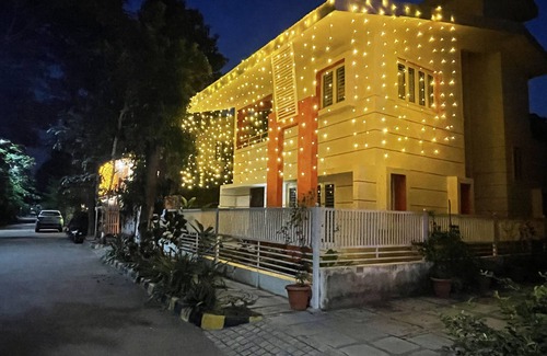 Cette villa avec 3 chambres et 3 salles de bain à Anekal est la solution parfaite pour explorer les environs en toute simplicité. Les amoureux de la nature et du grand air seront ravis de loger à 25 minutes en voiture de Parc national de Bannerghatta et à 17 minutes de Pearl Valley. Vous parcourrez aisément le trajet de 22 minutes en voiture jusqu'à RGA Tech Park ou de 26 minutes jusqu'à Prestige Tech Park.
