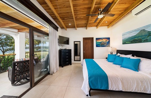 Large poolside and beachfront 4 bedroom 5 bath villa directly on the beach with pool, large yard and on-site concierge services. Suite sleeps up to 8 and has full kitchen, living room and dining room and expansive verandas overlooking the ocean. Soft sand beach excellent for swimming and playing with kids. Visit our Instagram @villa_potrero for additional photos and videos. Situated directly along the 2.5-mile beachfront of Playa Potrero overlooking the ocean, Villa del Mar includes a professionally landscaped private garden with an oceanfront patio for sunset cocktail hours. A private gate opens to a sandy beach for casual walks, a dip in the ocean, paddle boarding or just watching the sailboats pass by. The bay has gentle waves that are calm and inviting with warm swimmable water. Your view includes the Catalina Islands 6 miles offshore, one of the most sought out scuba diving and snorkeling locations in Costa Rica. Dive boats can get there in 10 minutes.