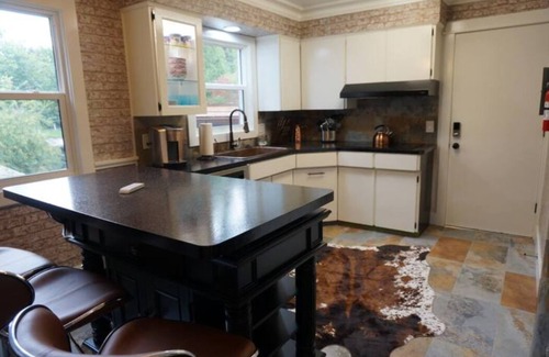 Similar to a luxury hotel experience at a fraction of the price! The Les Paul is one of the 5 apartments available within this building. Each apartment has one bedroom, one living area, a separate office workspace with a pull out bed, a modern kitchen with high-end appliances, and a private bathroom. Each includes an assigned garage parking spot & shared patio access. It sits in a quiet neighborhood close to downtown. This location is perfect for nature enthusiasts, foodies, or anyone who loves the downtown scene.