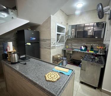 Offrant une vue sur le jardin, l’hébergement Luxury Duplex Villa in Mazarine, New Alamein vous accueille à El Alamein, à respectivement 27 km et 8,8 km de ces lieux d’intérêt : Marassi Marina et Complexe hôtelier Porto Marina. Cet hébergement met à votre disposition un balcon et un parking privé gratuit. Cet appartement possède une terrasse, 2 chambres, un salon et une cuisine bien équipée. Une télévision à écran plat est à votre disposition. L'aéroport le plus proche (Aéroport international d’El-Alamein) est à 55 km.