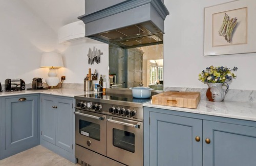 The living room corner sofa is the ultimate place to relax on a winter’s evening by the fire, or kick back as a group and enjoy blockbuster movies on the 65" Samsung smart TV with state-of-the-art surround sound system. SKY TV is provided, along with all the usual entertainment apps. For rainy days, there’s a selection of board games provided. Wish to head out into the garden? Large bi-folding doors open out, revealing exquisite views of the garden area and the beautiful willow tree, which takes centre stage among various other tree species! There is also a second bathroom with a walk-in shower unit and large bathtub as well as a utility room with washing machine & separate tumble-dryer. The garden is approximately 0.5 acres exclusively for your use, and is perfect for sunbathing, picnics or even some cricket or croquet.