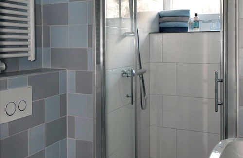Layout: Ground floor: (Living room(TV(flatscreen), seating area), open kitchen(dining table, seating area, hob(5 ring stoves, gas), coffee machine, oven, microwave, dishwasher, fridge(+ freezer)), bedroom(single bed, single bed), bedroom(double bed box), bathroom(shower(walk-in shower), sauna(2 persons), washbasin), toilet(toilet)) On the 1st floor: (bedroom(single bed, single bed, double bed box), bedroom(single bed, single bed, double bed box), bathroom(shower, washbasin, toilet)) sauna, jetty, Bubble bath, heating, terrace, garden, garden furniture, sun loungers, BBQ(on request, gas), parking, parasol, bicycles available, lounge set